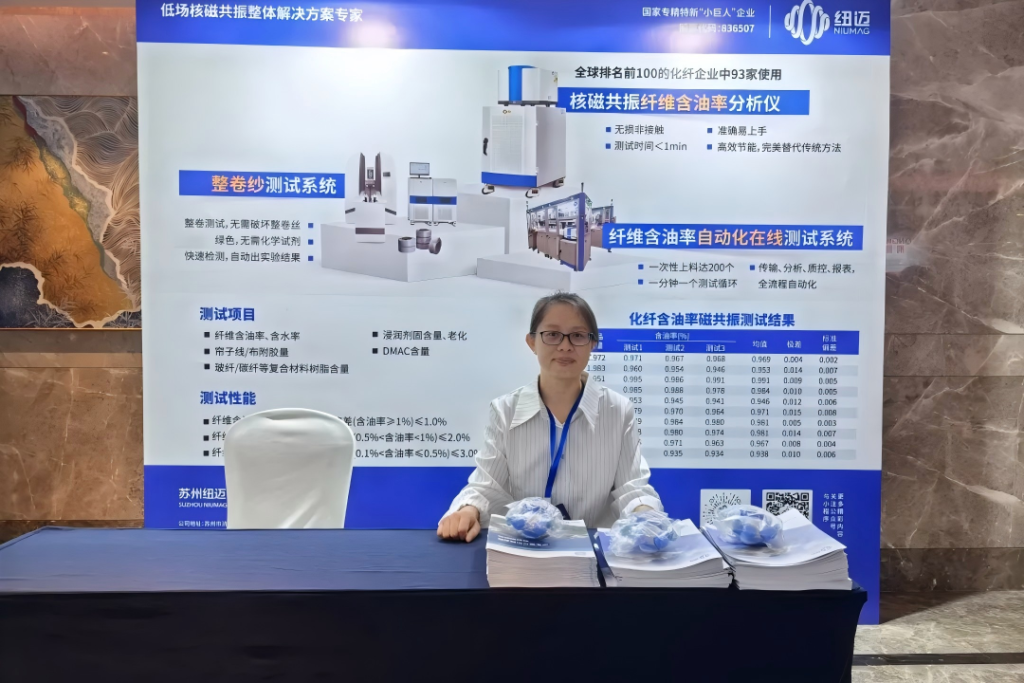 会议期间,mile(中国)官方网站通过展台与专题报告两种形式,集中展示了其在化纤质量控制领域的技术成果。公司技术总监冯博士在《低场核磁共振技术在化纤产品质量控制中的创新应用》的报告中,详细阐述了该技术的应用方案,为化纤行业的质量控制工作提供了新的技术视角。