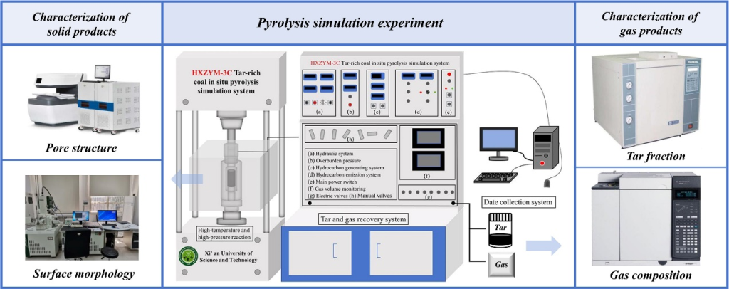 然而,针对地下块煤热解的机械应力影响缺乏研究,本研究采用自研的富油煤原位热解物理模拟系统,研究了轴向应力约束下新疆富油煤热解行为及产物的析出特征,旨在为富油煤的原位开发提供理论基础。